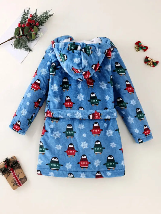 Peignoir de Bain Enfant Polaire avec Imprimée Pingouins
