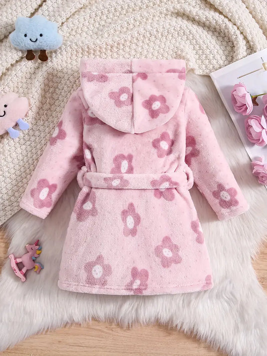 Peignoir de Bain Enfant en Polaire à Fleurs Rose