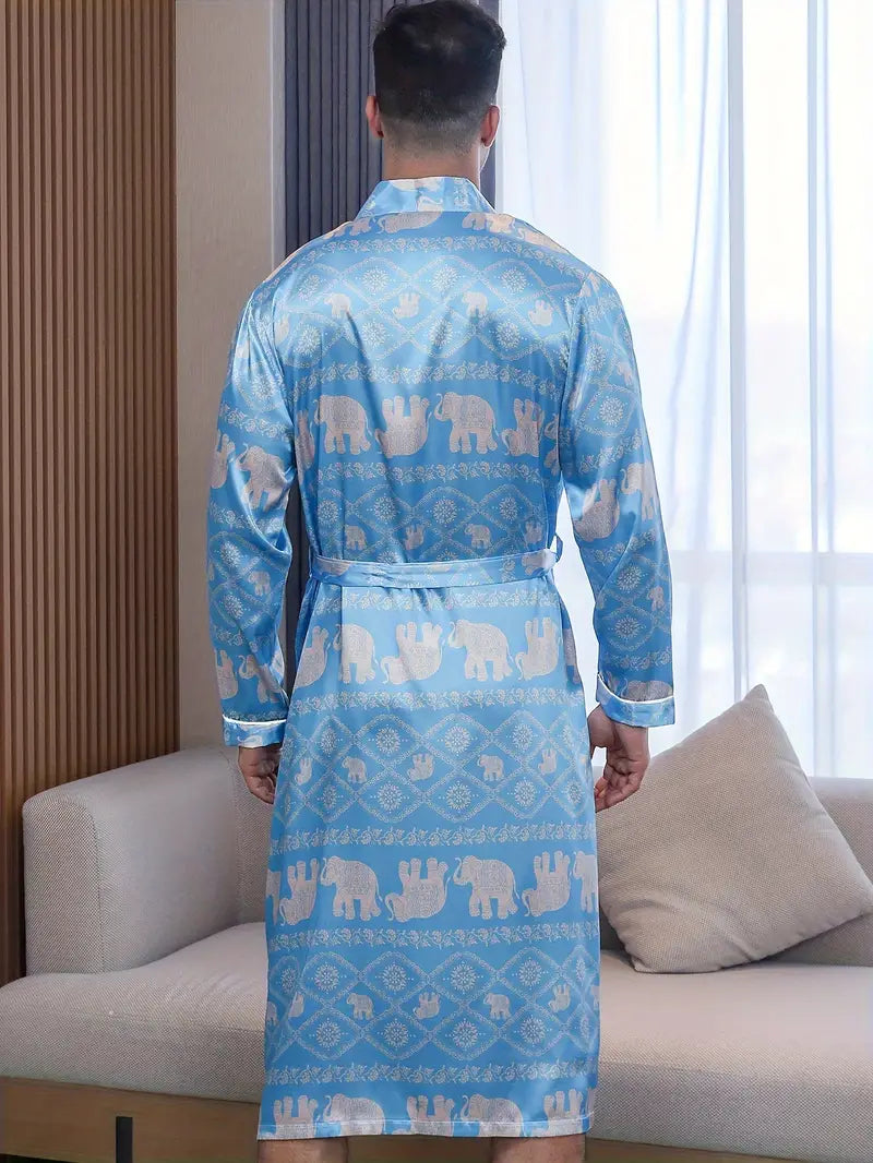 Ce peignoir kimono pour homme est l'alliance parfaite entre luxe et confort. Confectionné en satin bleu, il offre un toucher doux et soyeux. Idéal pour transformer vos moments de bain en instants de détente absolue.